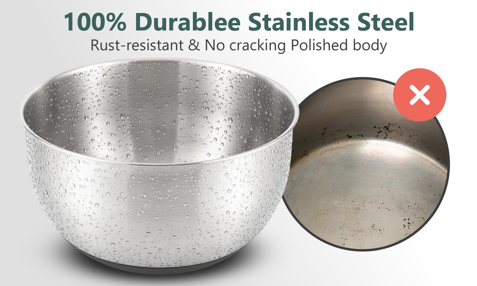 Premium 18/10 stainless steel construction that never rusts, stains, or retains odors.