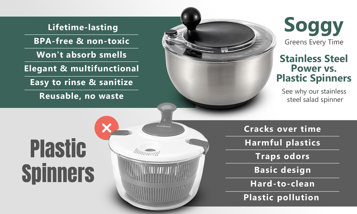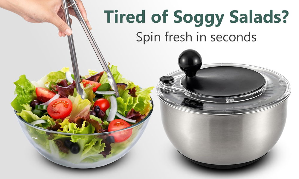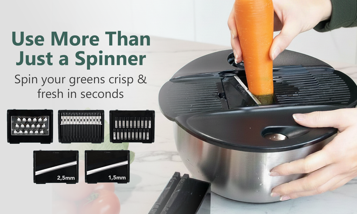 Spin greens dry in seconds crisp, fresh, ready to serve.
